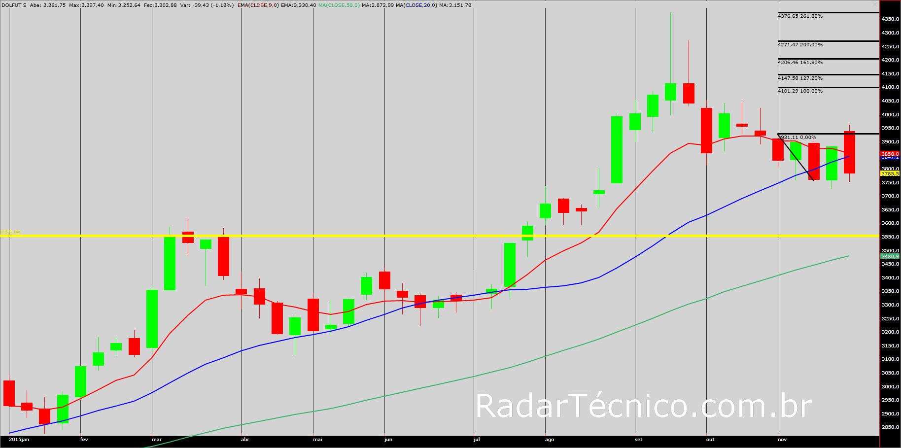 Dólar em tendência de alta, fecha a semana cotado em R$ 3,78. Com a ocorrência da superação de R$ 3,92, máxima da semana anterior, a expectativa é de concretização do objetivo, ou seja, o alvo projetado em R$ 4,10 nas próximas semanas.