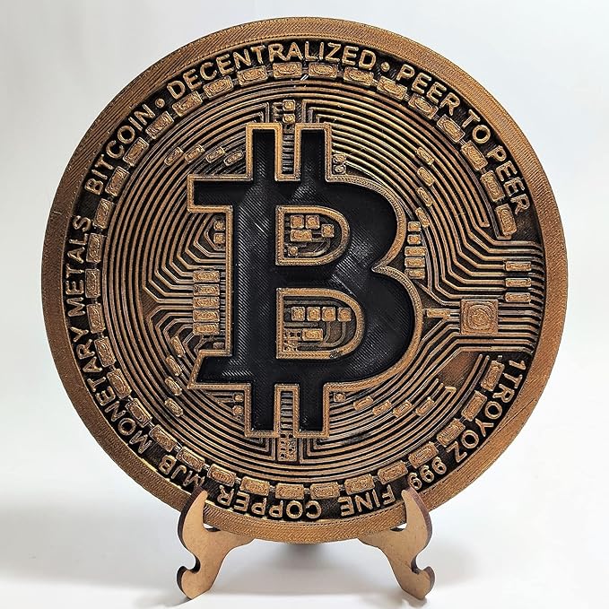 Moeda Bitcoin 3D Fisica Dourada 20 Cm Parede Com Suporte